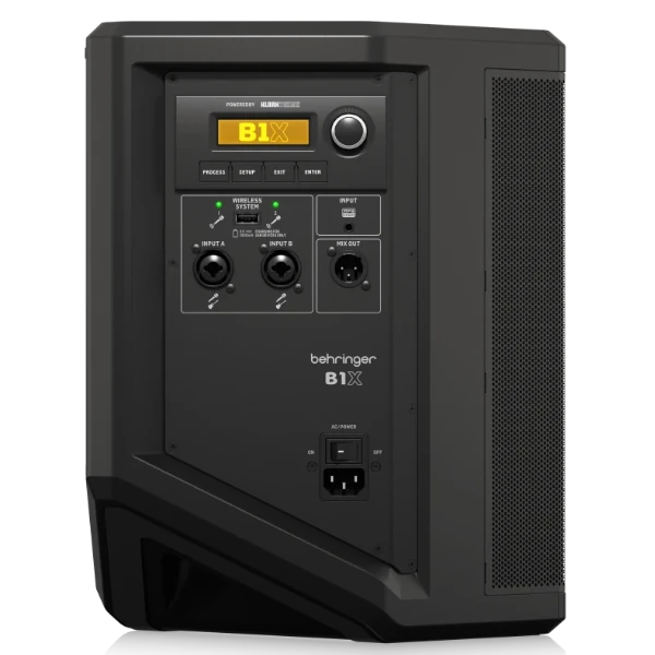 Altavoz portátil todo en uno de 250 vatios con funcionamiento a batería, mezclador digital, efectos, control remoto mediante aplicación móvil iOS/Android, transmisión de audio por Bluetooth y opción de micrófono inalámbrico.