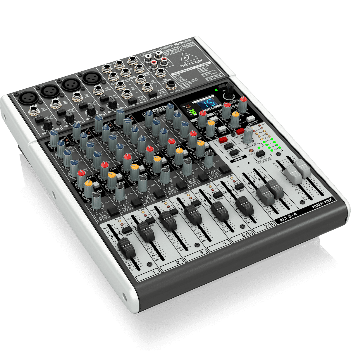 Mezclador premium de 12 entradas y 2/2 buses con preamplificadores y compresores de micrófono XENYX. British EQ, procesador Multi-FX de 24 bits e interfaz USB/Audio y 4-XLR.