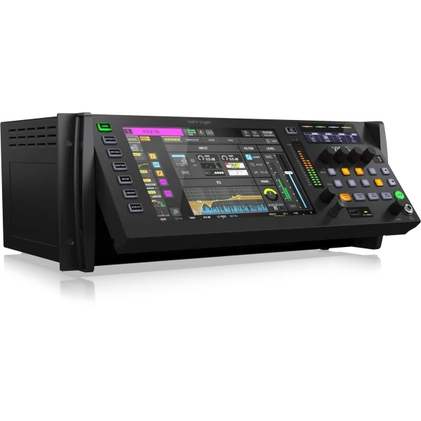 Eleva tu producción con la Behringer WING RACK en color negro, una consola digital de 4 unidades de rack (RU), con 40 canales y 28 buses, diseñada para montaje en rack. Incorpora una amplia pantalla táctil capacitiva de 10” junto con controles rotativos sensibles al tacto, lo que facilita enormemente la operación. Su diseño es altamente flexible gracias a tres secciones de faders independientes y a un área de control personalizable, que puede configurarse de manera rápida e intuitiva para adaptarse a cada flujo de trabajo.
