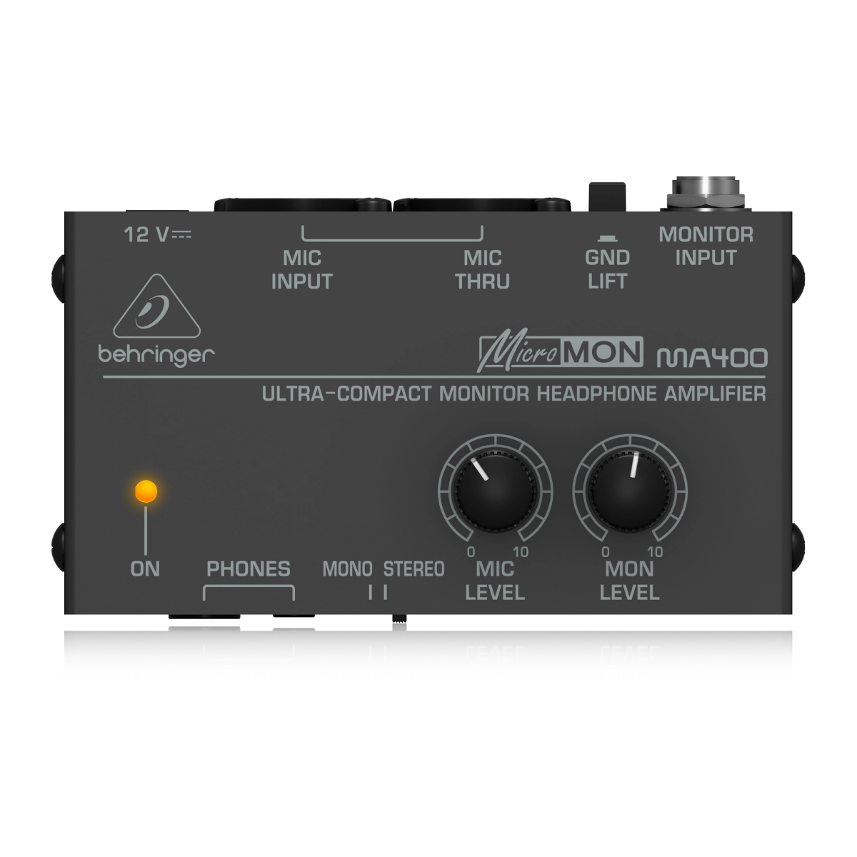 Con conectores flexibles de entrada y paso de micrófono, interruptor de toma de tierra, entrada de monitor estéreo con control de nivel de monitor dedicado y selector mono/estéreo, el MA400 tiene todo lo necesario para satisfacer incluso al artista más exigente en el escenario.