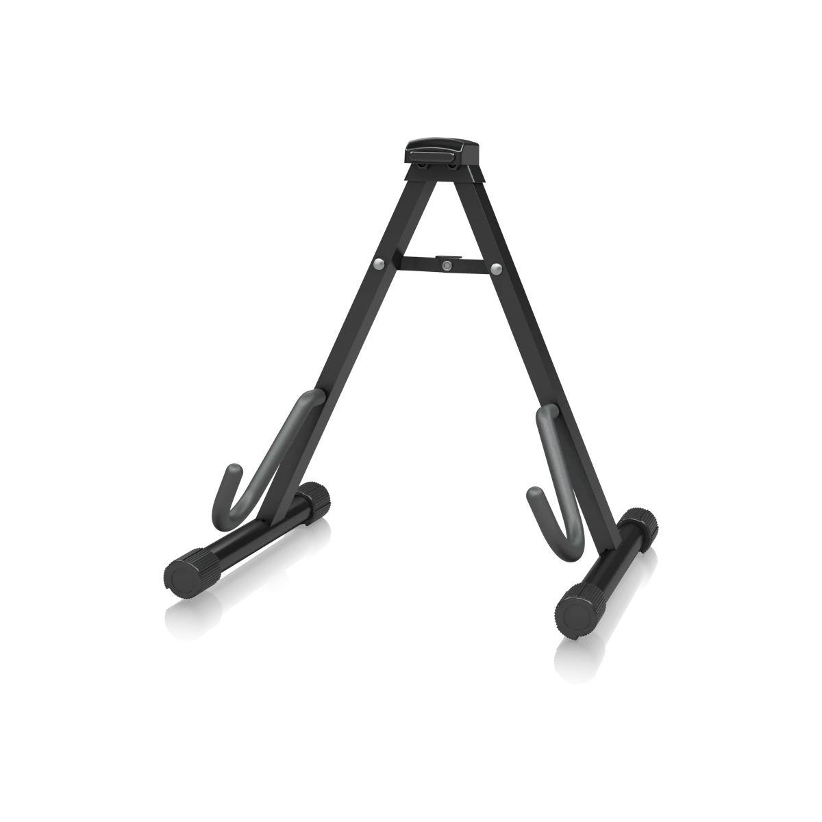 Behringer ha diseñado un soporte plegable para guitarra eléctrica que facilita su transporte y almacenamiento. Este ligero soporte en forma de A cuenta con una estructura metálica, patas de goma y un sistema de bloqueo seguro para mantener la guitarra en su sitio. Está recubierto con un suave acolchado que garantiza la seguridad de la guitarra.