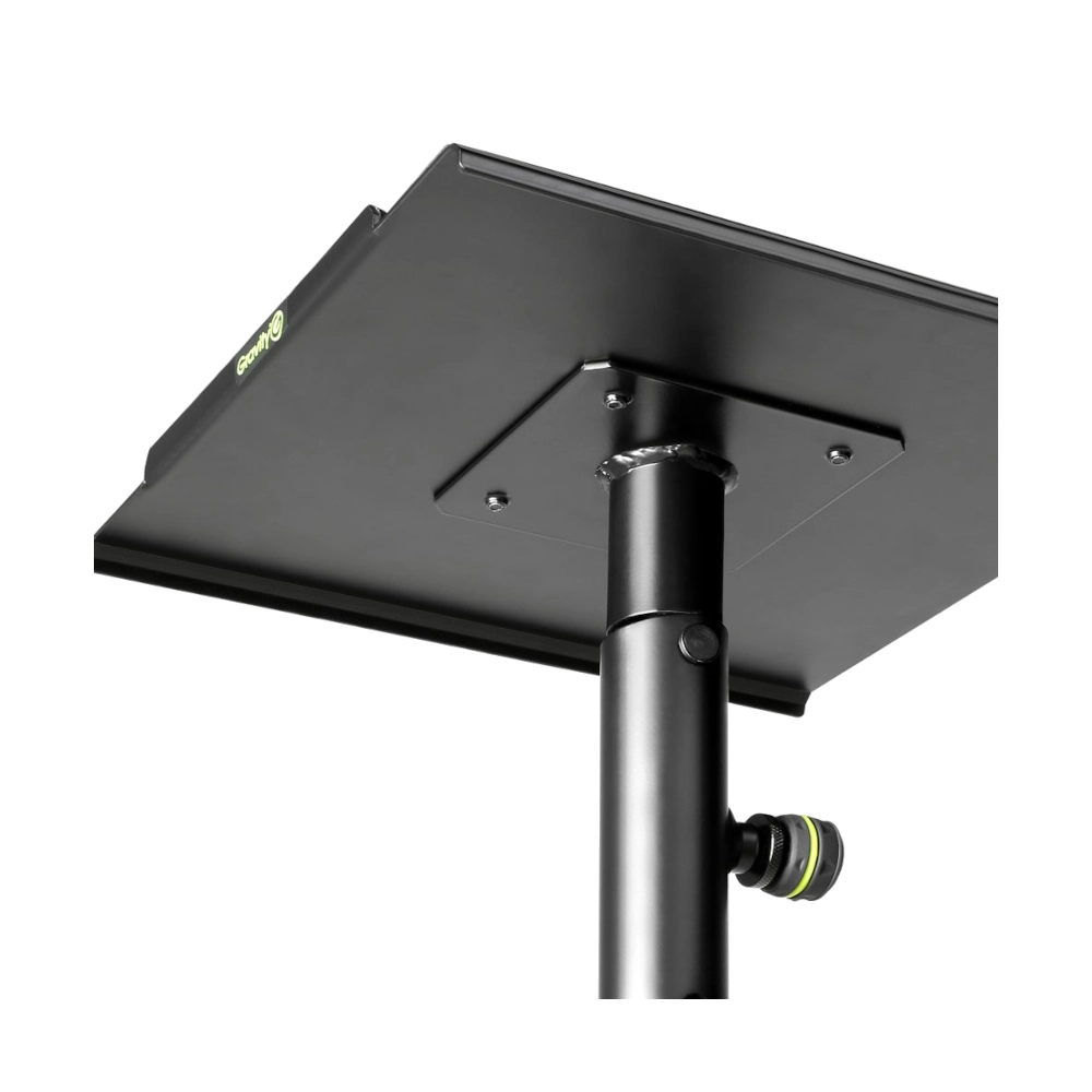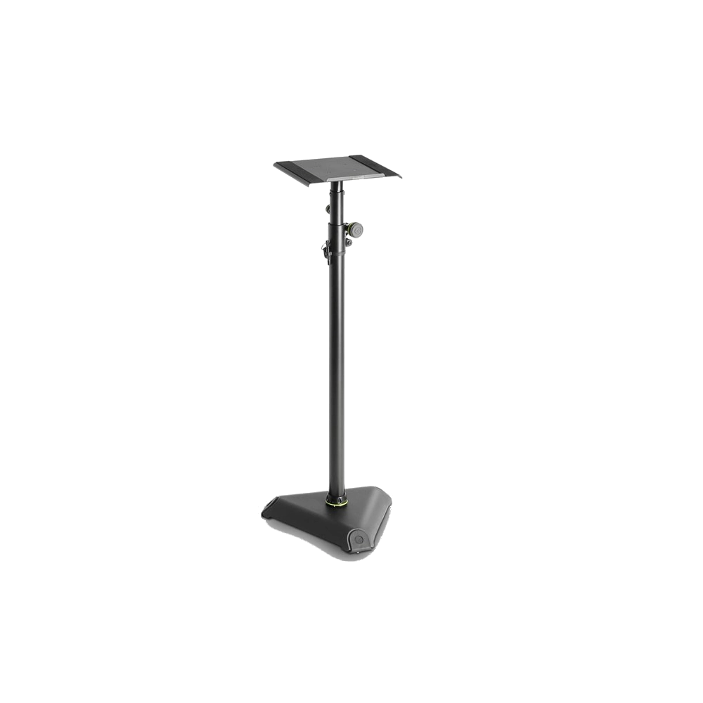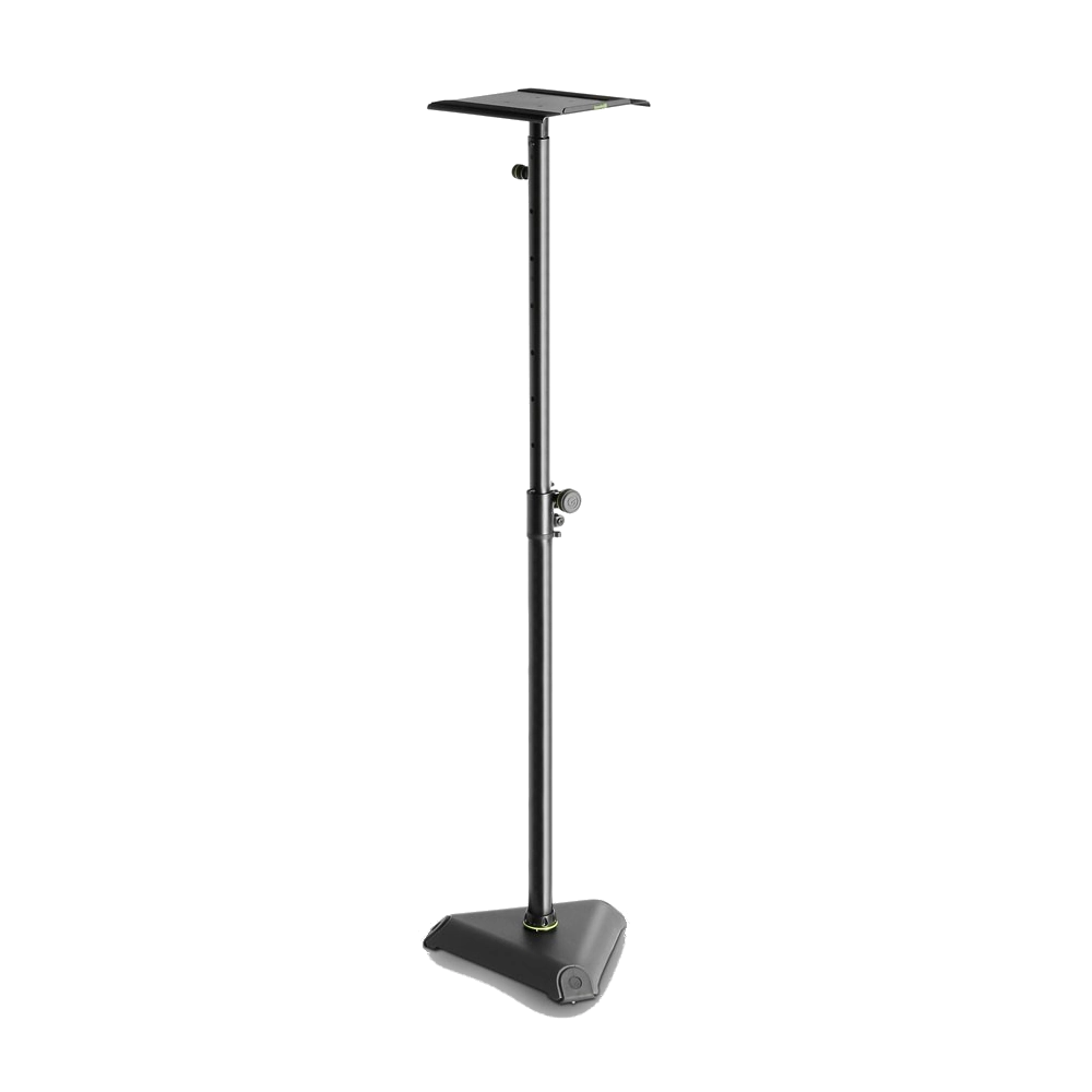 El soporte para monitores de estudio Gravity® SP 3202 VARI®-TILT cuenta con una robusta base triangular de hierro fundido y una bandeja de acero de 250 x 250 mm con almohadillas aislantes de espuma. Su inclinación es ajustable en 10° y su altura entre 930 y 150 mm para una óptima colocación de los altavoces.
