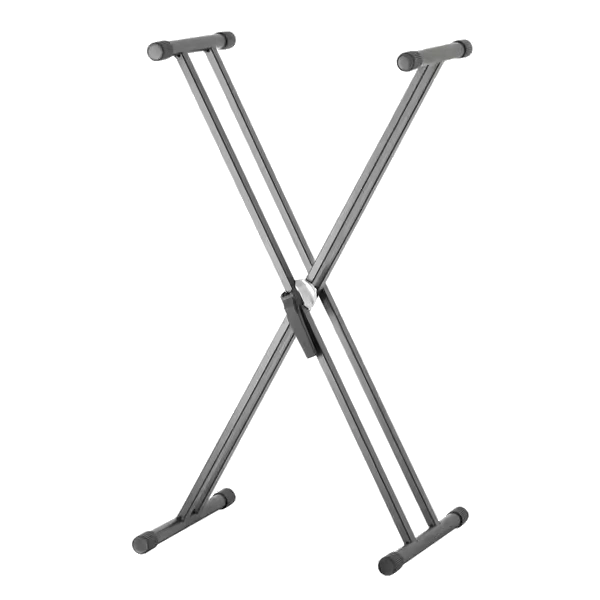 Soporte estable para teclado con doble refuerzo de sección cuadrada y ajuste rápido. Patas de goma de alta calidad.