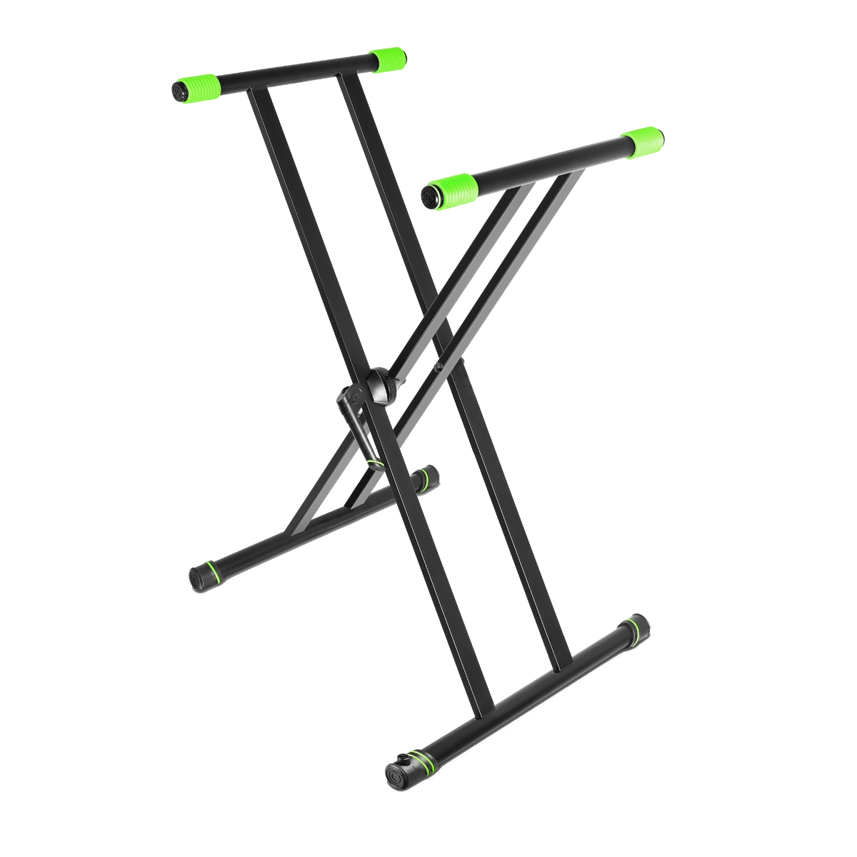 El KSX 2 es un soporte para teclado estable y robusto con doble soporte en X y una capacidad de carga de 65 kg. Su altura se puede ajustar cómodamente hasta 90 cm mediante un sistema de bloqueo rápido.